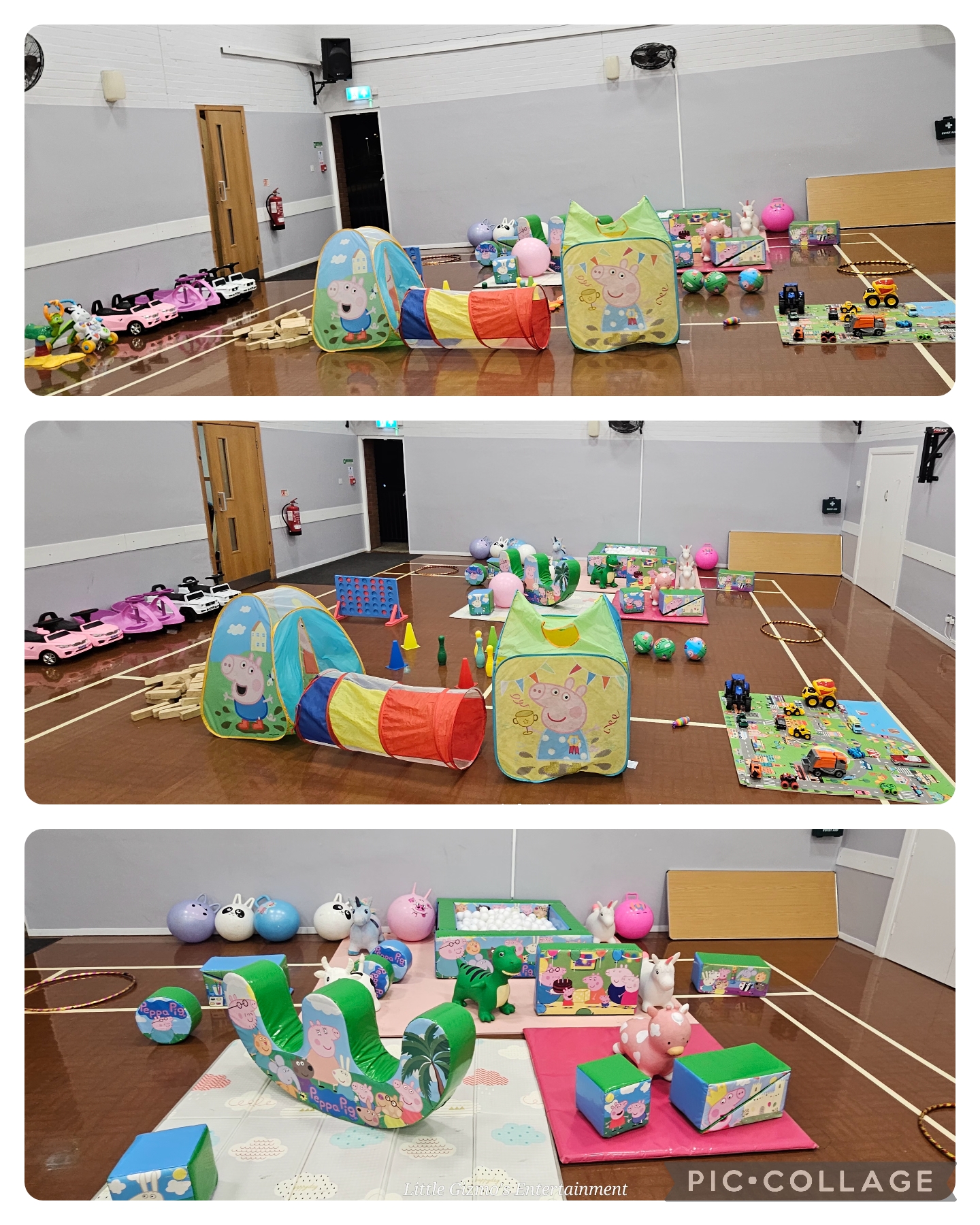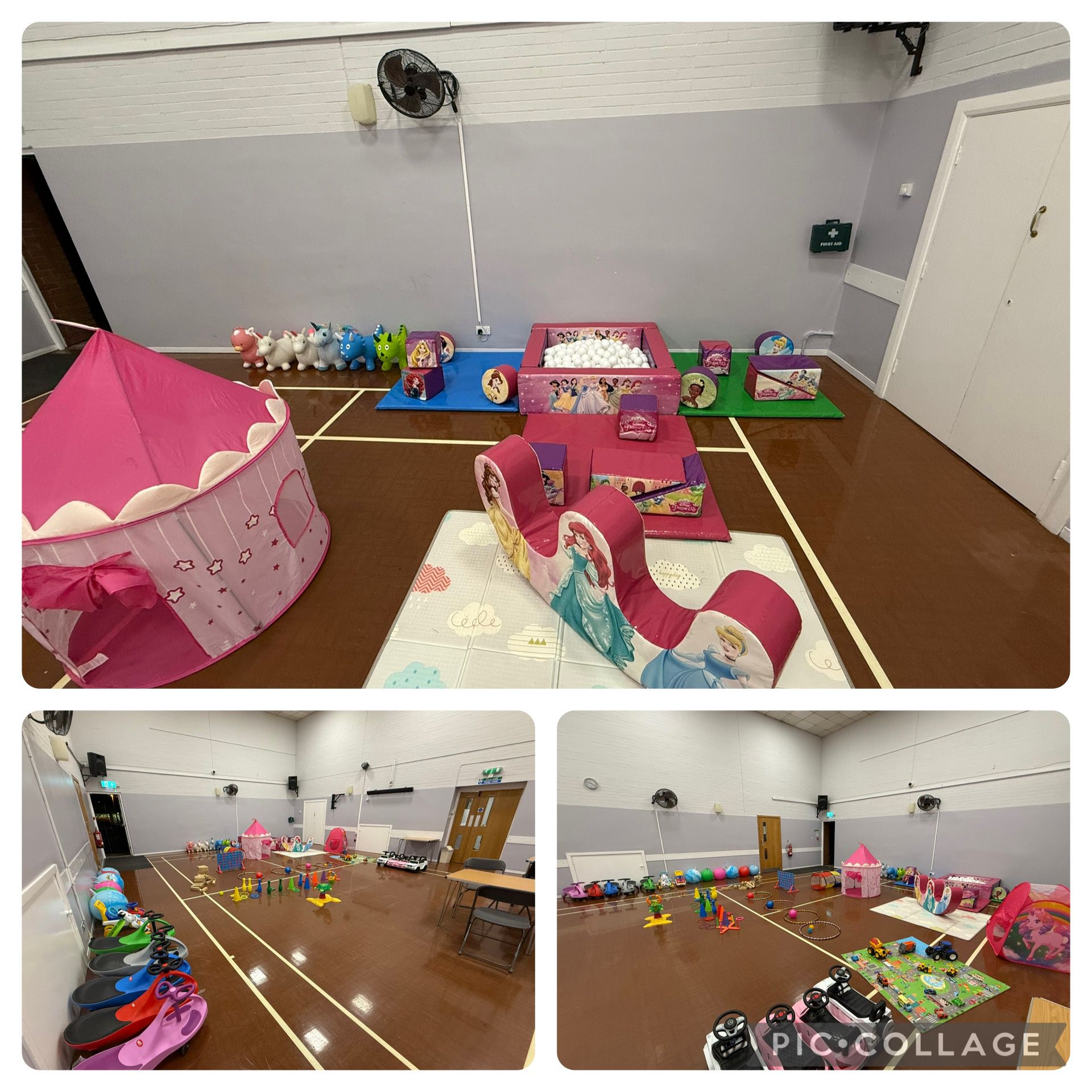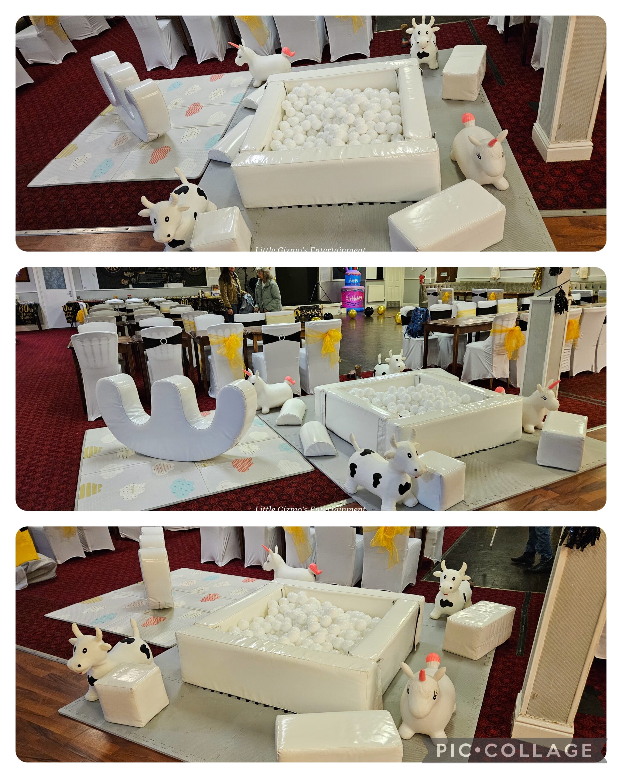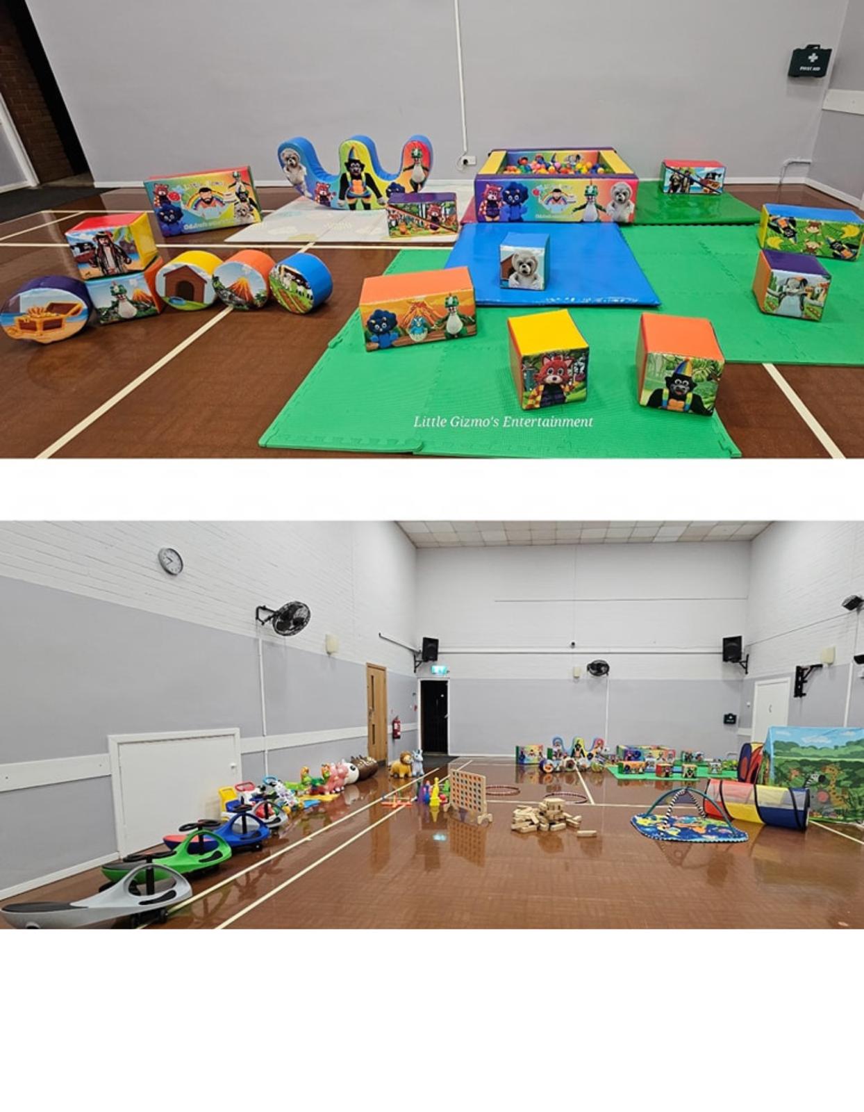 What's included: Ball pit, Balls, Rocker, Shapes, Bubble machine, Didi cars, bean bags, skittles, tents, bouncers and hoppers!!